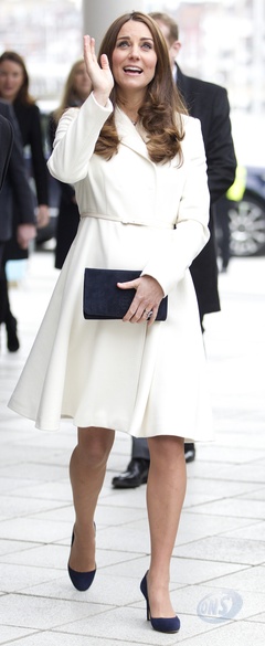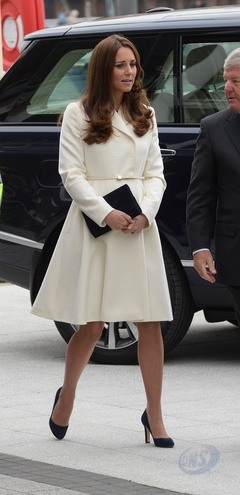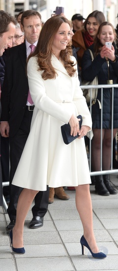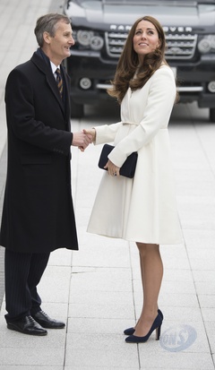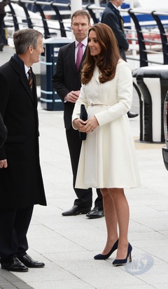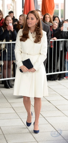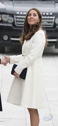 Ksiezna Kate w bialym plaszczyku odwiedzila szkole w Portsmouth