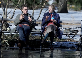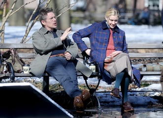 Ethan Hawke i Greta Gerwig na planie Maggie's Plan w Nowym Jorku