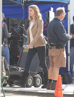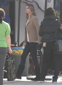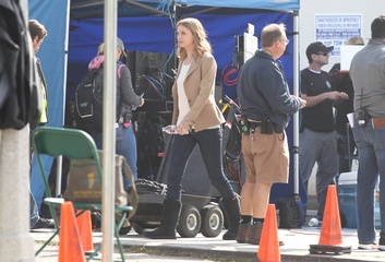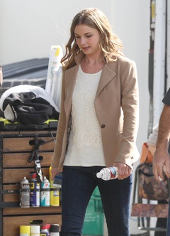 Emily Vankamp na planie serialu Zemsta w Santa Monica