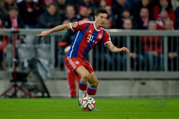 Robert Lewandowski na boisku podczas meczu Bayern Monachium kontra Eintracht Brunszwik