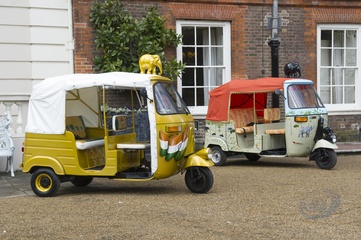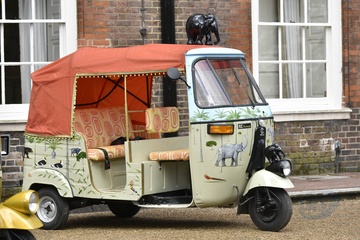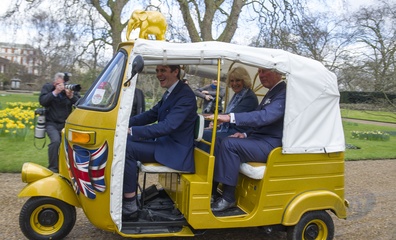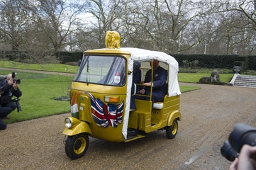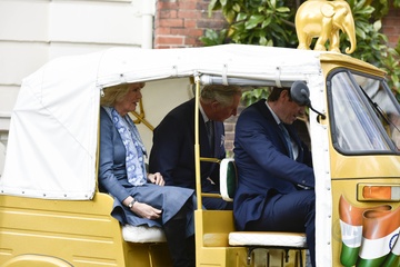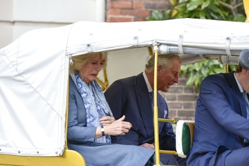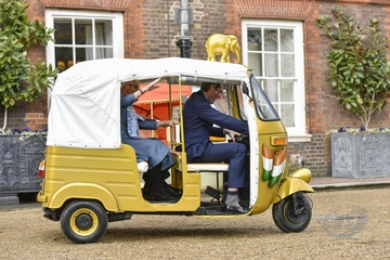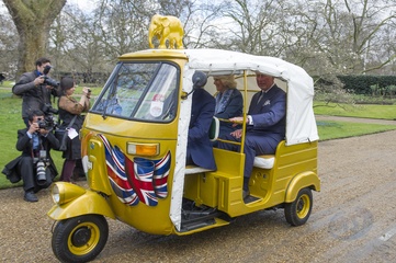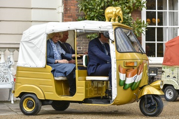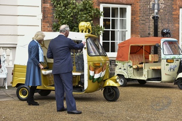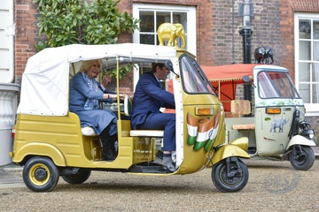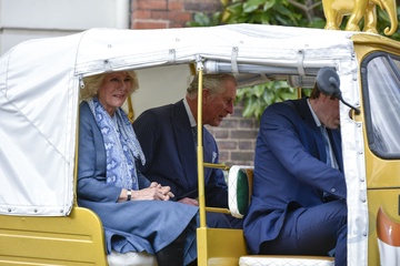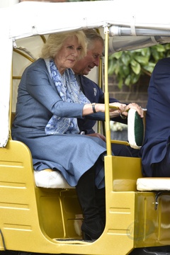 Ksiaze Karol i Ksiezna Camilla podczas przejazdzki riksza
