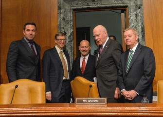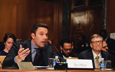 Ben Affleck i Bill Gates przemawiaja w Waszyngtonie