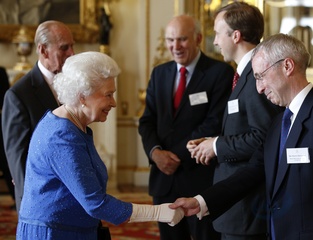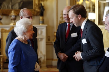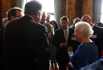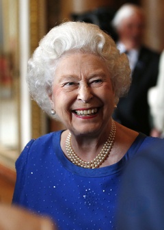 Krolowa Elzbieta II na przyjeciu w Palacu Buckingham