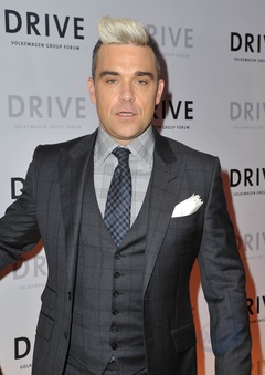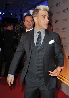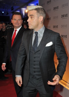 Robbie Williams w blond czuprynie na rozpoczeciu DRIVE Volkswagen Group, Berlin