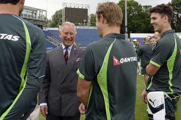 Ksiaze Karol spotkal sie z pilkarzami na SWALEC Stadium