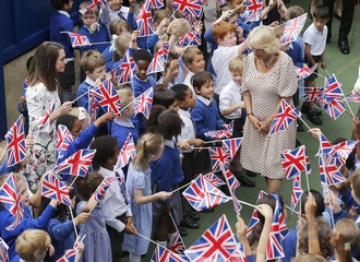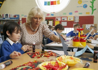 Ksiezna Camilla z dziecmi z St. Peter's Eaton Square Church
