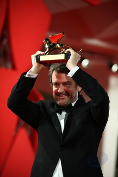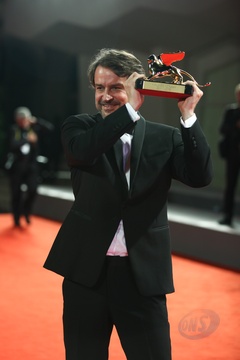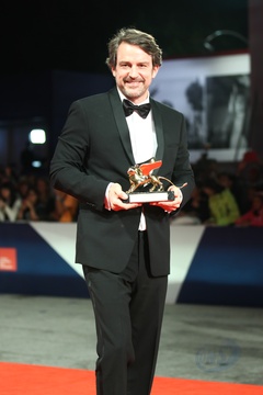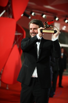 72. Festiwal w Wenecji - Lorenzo Vigas pozuje ze zlotym lwem
