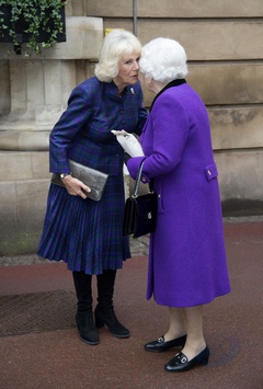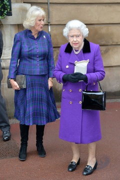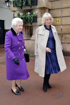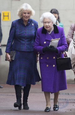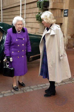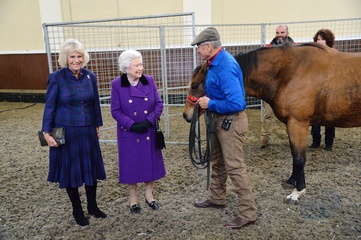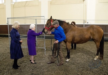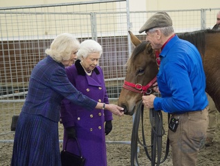 Krolowa Elzbieta II i ksiezna Camilla na spotkaniu z zaklinaczem koni
