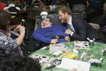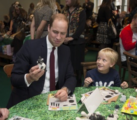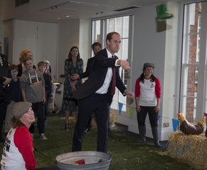 Ksiaze William i Harry oraz Ksiezna Kate rzucaja kaloszami