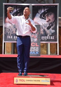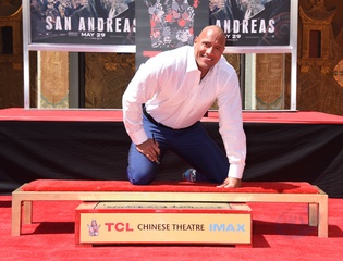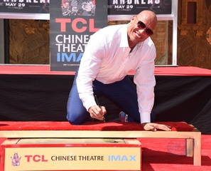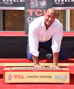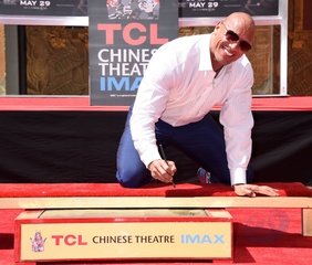 Dwayne The Rock Johnson odcisnal dlonie i stopy w Chinese Theatre, Hollywood