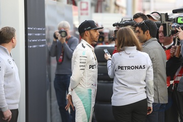 Lewis Hamilton na torze w Barcelonie