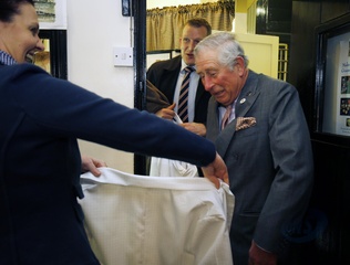 Ksiaze Karol podczas wizyty w Grasmere Gingerbread Shop