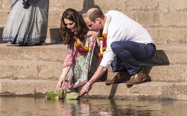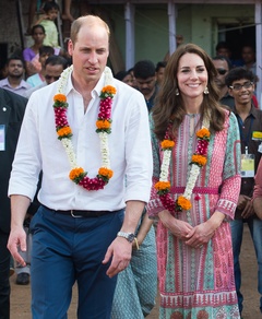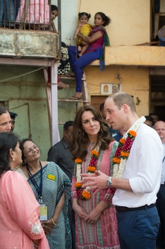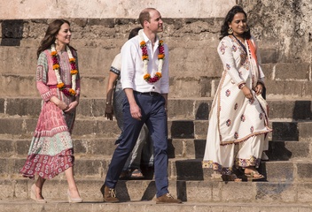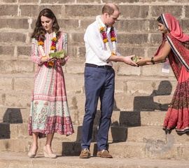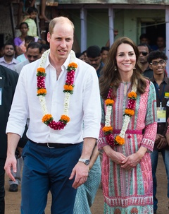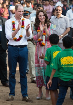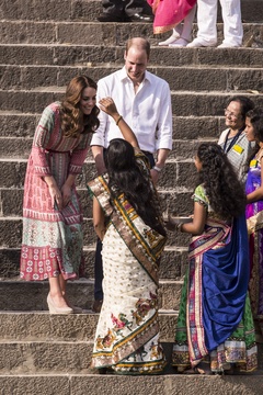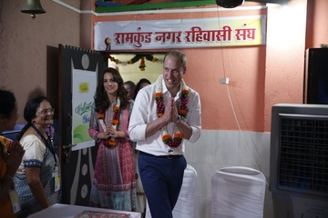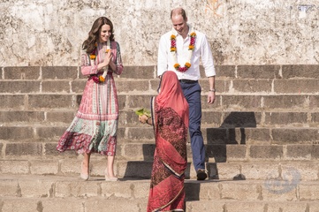 Ksiaze William i Ksiezna Kate w Indiach - tradycyjne powitanie