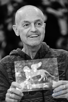 Wenecja 2015 - Jonathan Demme pozuje z nagroda Visionary Talent Award