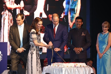 Ksiezna Kate i ksiaze William kroja tort mieczem, wizyta w Indiach