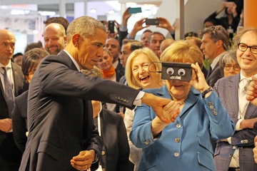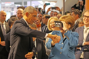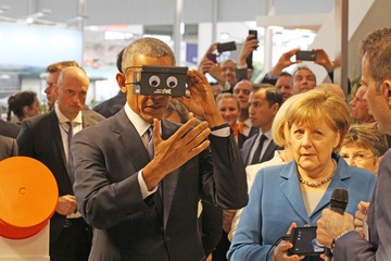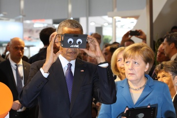 Barack Obama i Angela Merkel na targach w Niemczech