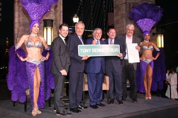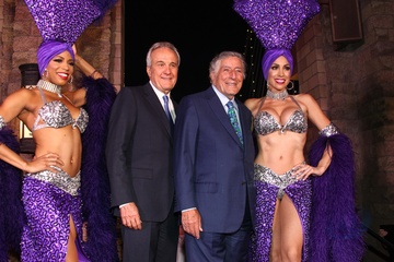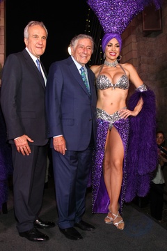Mark Shunock, Larry Ruvo, Tony Bennett, Rossi Ralenkotter, Steve Sisolak, Showgirl