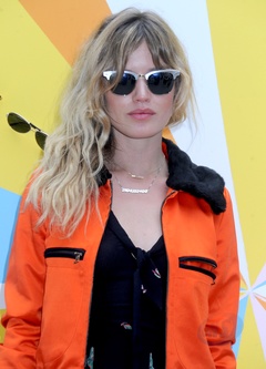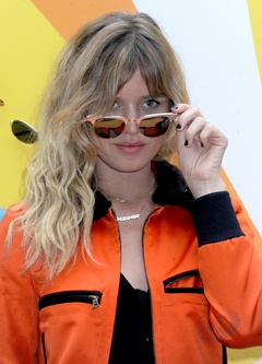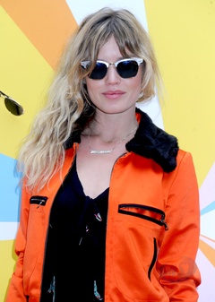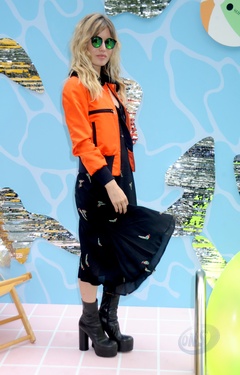 Georgia May Jagger w pomaranczowej kurtce i koturnach