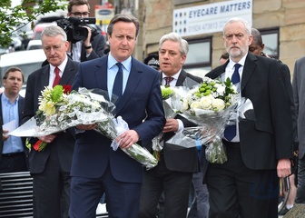 Politycy na miejscu zabojstwa parlamentarzystki Jo Cox