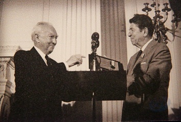 Stefan Korbonski wrecza krzyz AK Ronaldowi Reaganowi