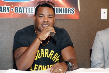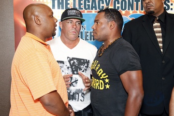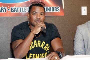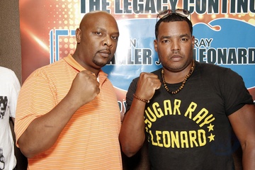 Ray Leonard Jr i Marvin Hagler Jr na konferencji przed walka