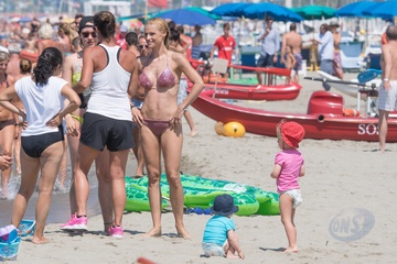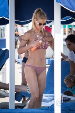 Michelle Hunziker w bikini, smaruje dekolt opalaczem