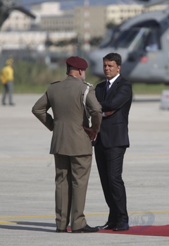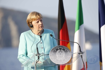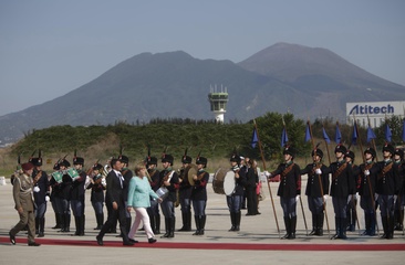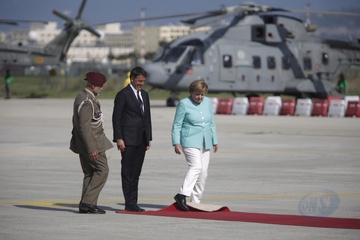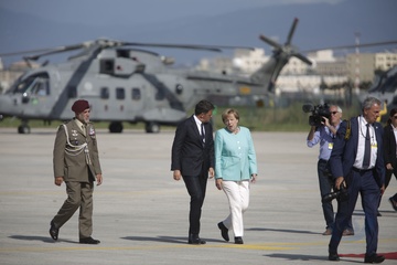 Spotkanie politykow we Wloszech - Premier Wloch, kanclerz Niemiec i prezydent Francji