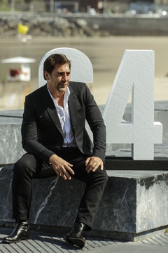Javier Bardem pozuje do zdjec na festiwalu w San Sebastian