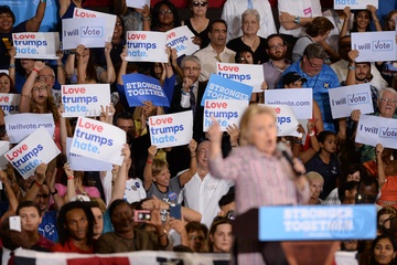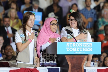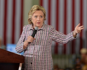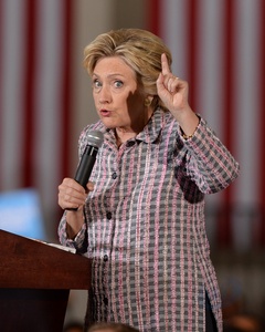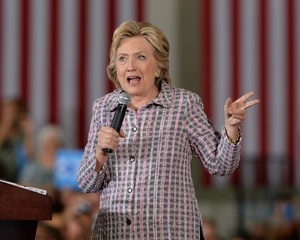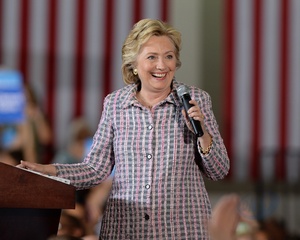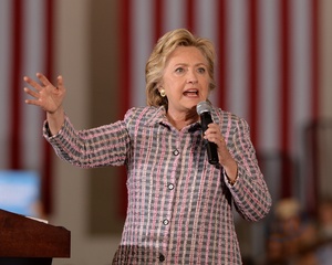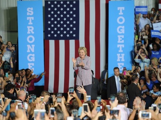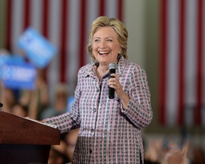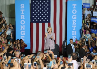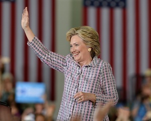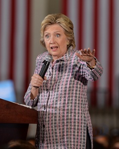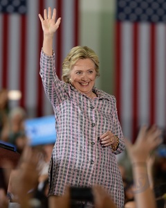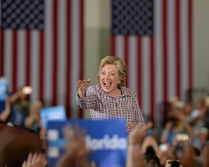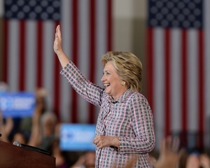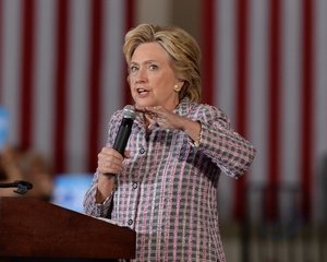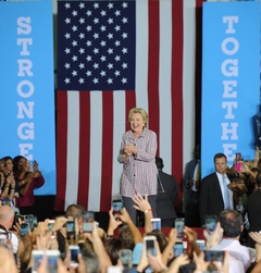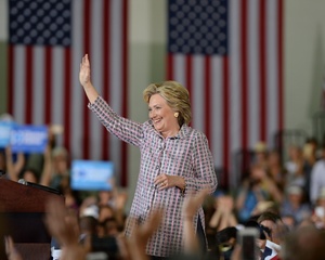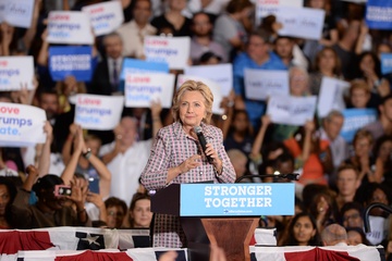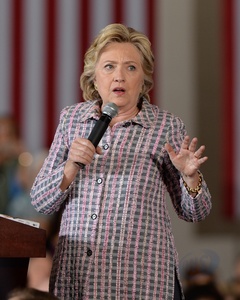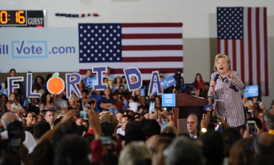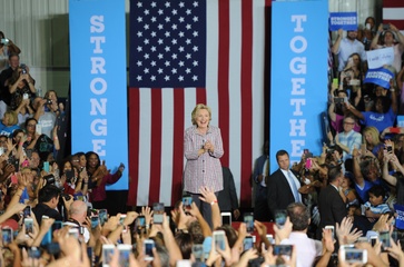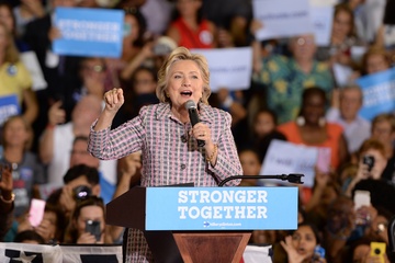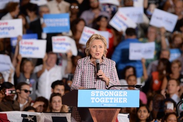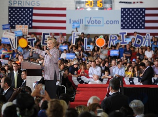 Hillary Clinton przemawia na wiecu w Coral Springs Gimnazjum