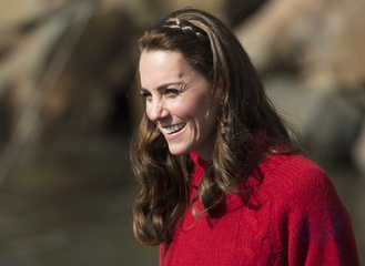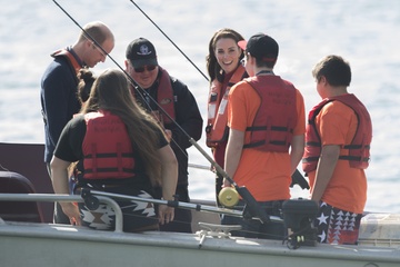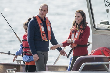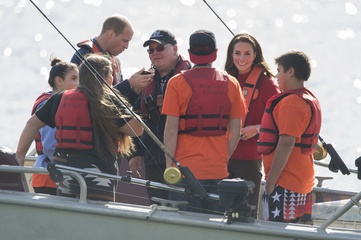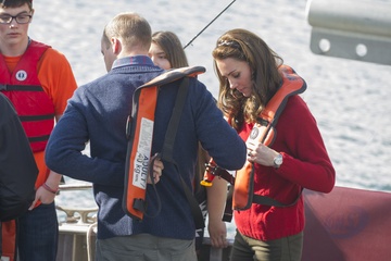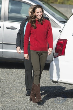 Ksiezna Kate w czerwonym golfie na lodzi, Kanada