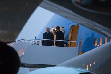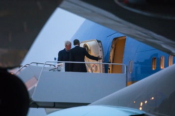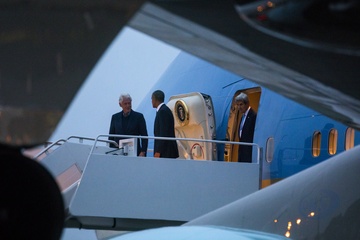 Barack Obama i Bill Clinton wracaja z pogrzebu Peresa