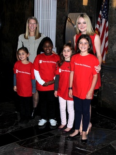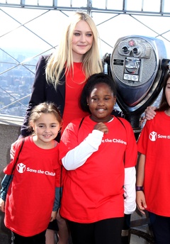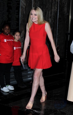 Dakota Fanning w czerwonej sukience na Empire State Building
