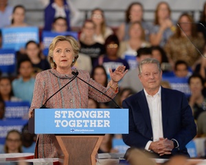 Hillary Clinton i Al Gore biora udzial w dyskusji o zmianach klimatu, Miami
