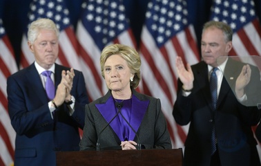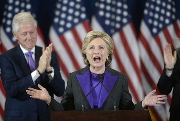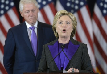 Smutni Clintonowie na przemowieniu po przegranych wyborach