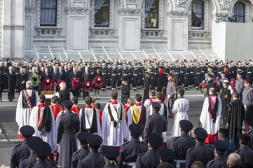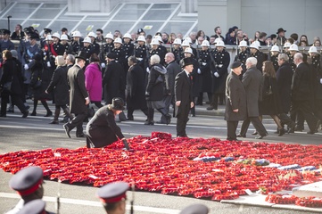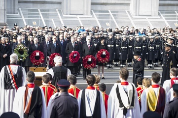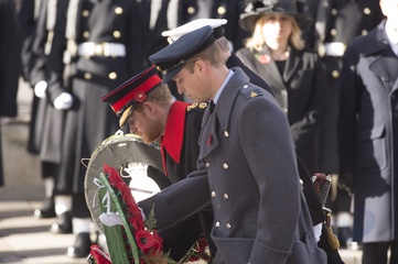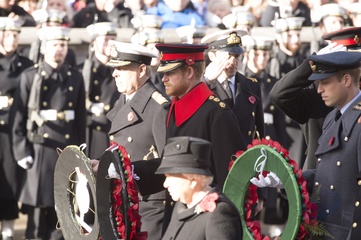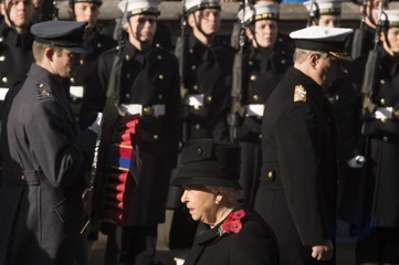 Brytyjska rodzina krolewska i politycy podczas obchodow Niedzieli Pamieci