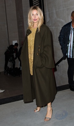 Sienna Miller w plaszczu do kostek i z szerokimi rekawami