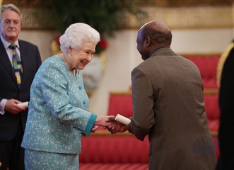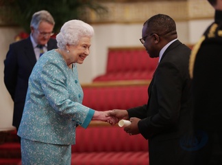 Krolowa Elzbieta II przyjela gosci w Palacu Buckingham