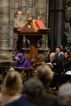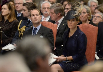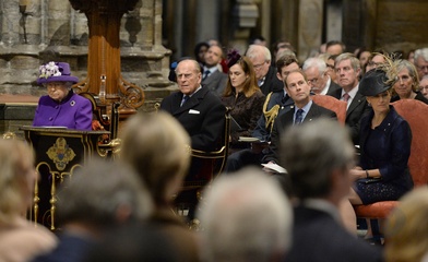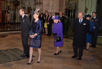 Krolowa Elzbieta II z mezem, synem Edwardem i synowa w Westminster Abbey
