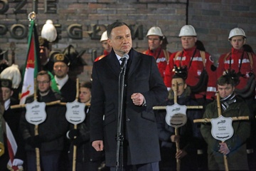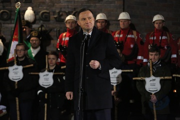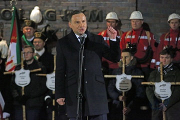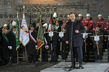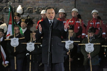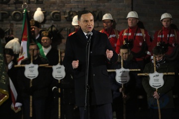 Piotr i Andrzej Duda z rodzinami gornikow Kopalnia Wujek