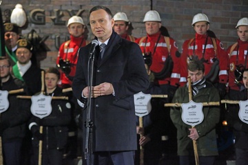 Andrzej i Piotr Duda z rodzinami gornikow Kopalnia Wujek