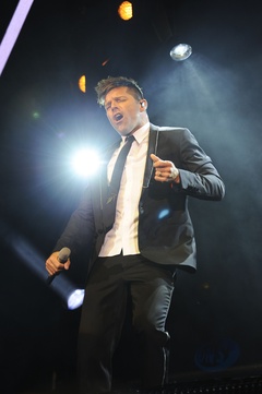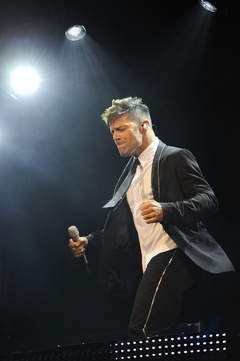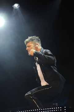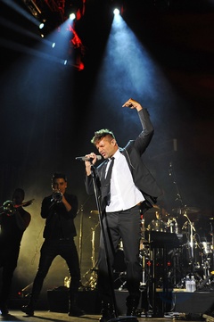 Ricky Martin w garniturze i krawacie na koncercie w Londynie