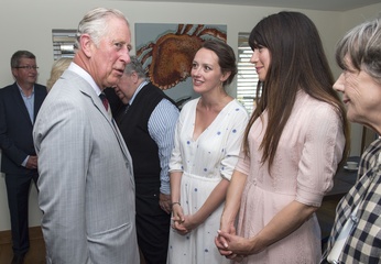 Ksiaze Karol i Camilla w Port Isaac w Kornwalii