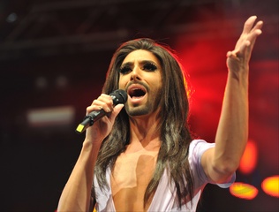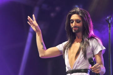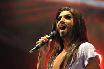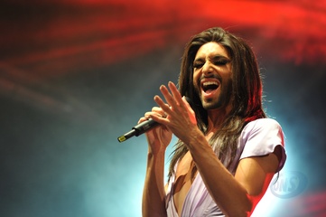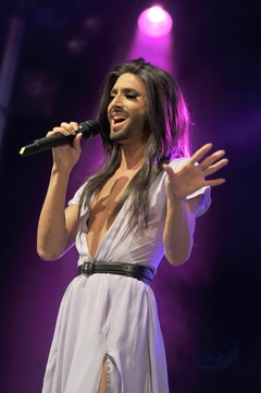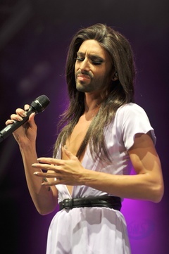 Conchita w glebokim dekolcie na scenie w Manchesterze