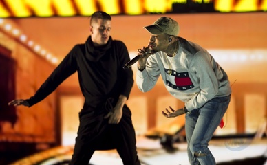 Chris Brown w bluzie Tommy na koncercie w Amsterdamie