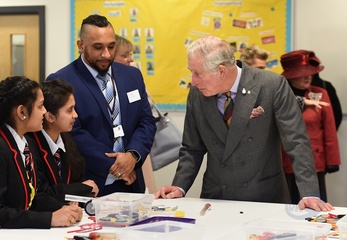 Ksiaze Karol podczas oficjalnej wizyty w Leicester