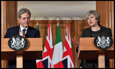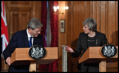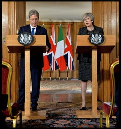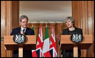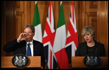 Theresa May na spotkaniu z wloskim premierem Paolo Gentiloni