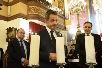 Nicolas Sarkozy w jarmulce na ceremonii, upamietniajacej masakre w Tuluzie