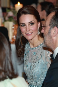 Ksiezna Kate w blekitnej sukni na kolacji w ambasadzie