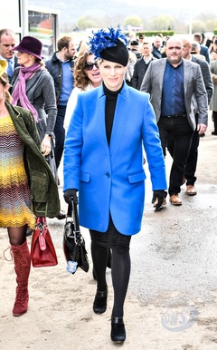 Zara Phillips Tindall w niebieskim plaszczyku, Gold Cup Day