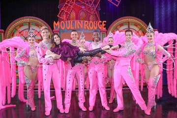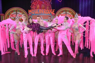 Teri Hatcher pozuje z tancerzami z Moulin Rouge w Paryzu